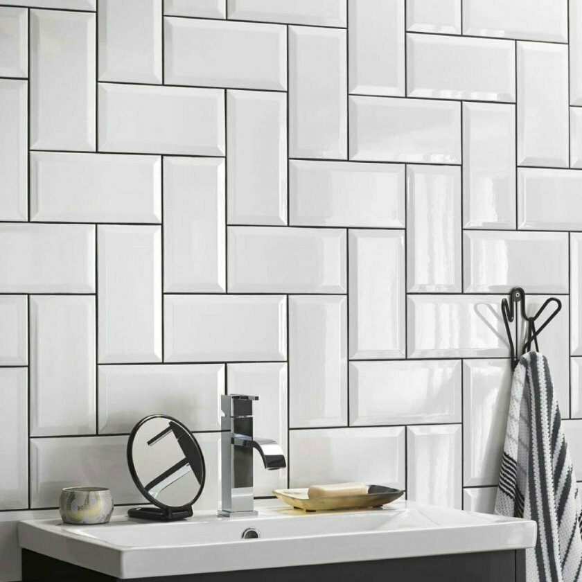 Karag Metro Bizoute Kitchen / Bathroom Wall Tile Ceramic Glossy 20x10cm White